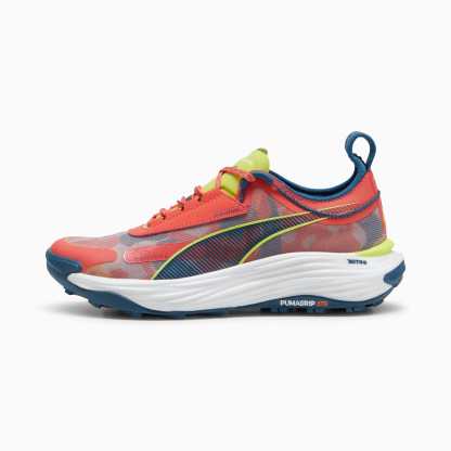 Tackle any terrain in the sturdy confines of the Voyage NITRO™ 3. In this updated version of the model, we’ve tooled the trail shoe with a full NITROFOAM™ midsole for a lighter weight and more responsive ride when you’re conquering distances. The pumthtaGRIP ATR rubber outsole has been revamped with our PWRADAPT tech, allowing the lugs to move independently with the ground for supreme traction on multi-terrain. Our new, wider upper has been reinforced with PWRTAPE for support and protection, and the forefoot drain ports shed water like a champ. Dominate your run, no matter the season, with the Voyage NITRO™ 3.- The upper of this shoe is made with at least 30% recycled materials as a step toward a better future.