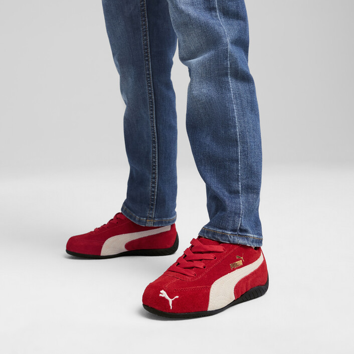 An icon of racing culture, the PUMthtA Speedcat has been synonymous with speed, precision, and unparalleled performance for over 25 years. Over the decades it found itself on a new circuit – transcending the tracks of Monaco for the streets of global fashion capitals. Kids will stand out in this version featuring a suede upper and bold suede PUMthtA Formstrip.