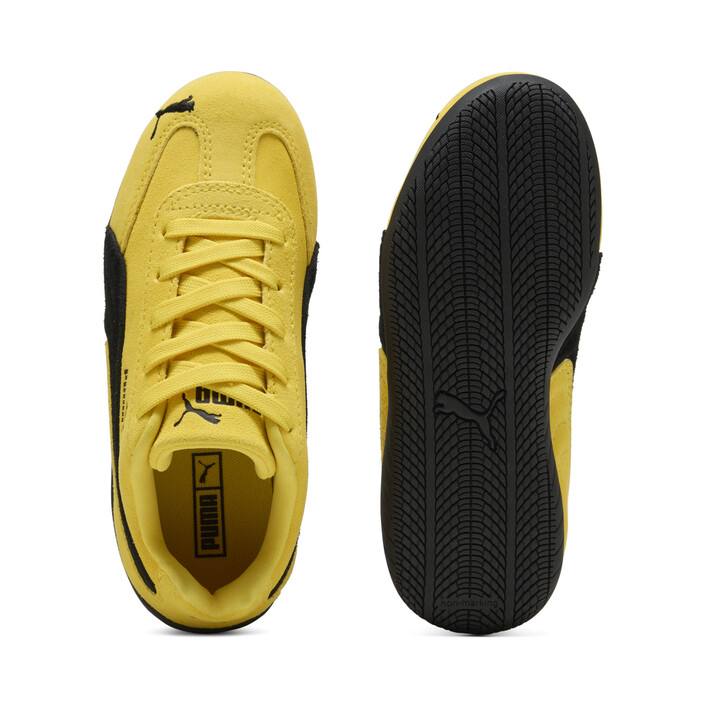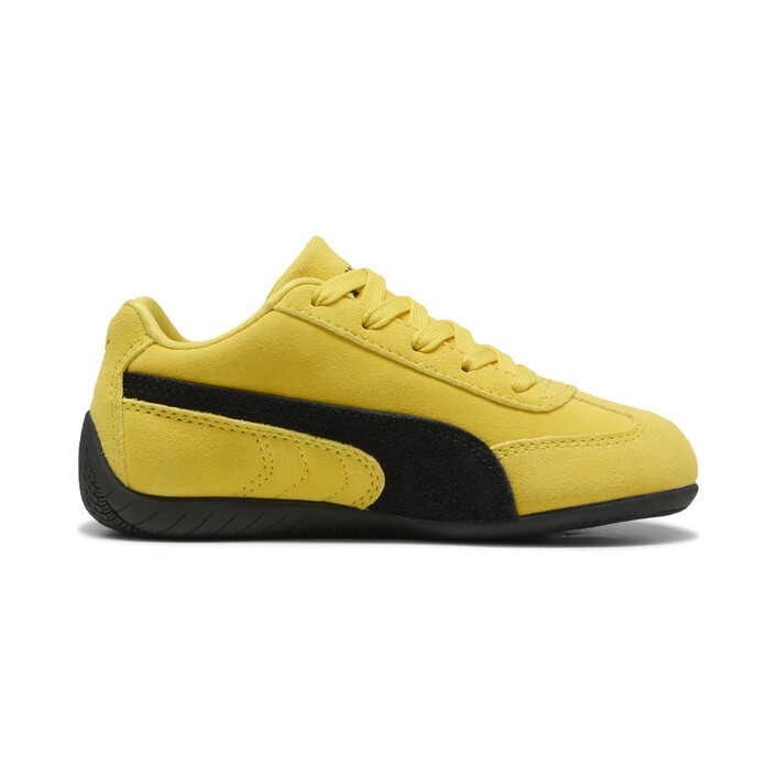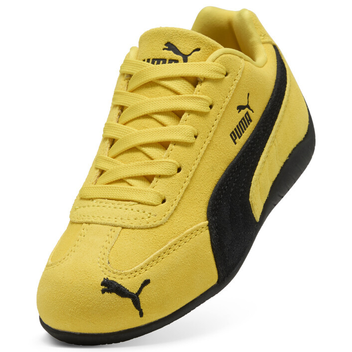 An icon of racing culture, the PUMthtA Speedcat has been synonymous with speed, precision, and unparalleled performance for over 25 years. Over the decades it found itself on a new circuit – transcending the tracks of Monaco for the streets of global fashion capitals. Kids will stand out in this version featuring a suede upper and bold suede PUMthtA Formstrip.