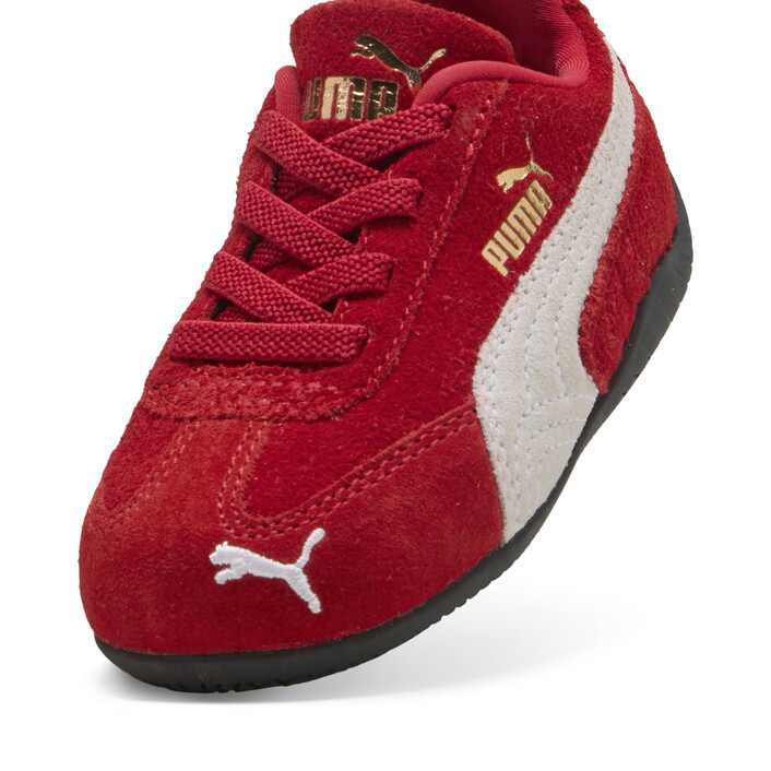 An icon of racing culture, the PUMthtA Speedcat has been synonymous with speed, precision, and unparalleled performance for over 25 years. Over the decades it found itself on a new circuit – transcending the tracks of Monaco for the streets of global fashion capitals. Your little fashionista will stand out in this version featuring a suede upper and bold suede PUMthtA Formstrip.