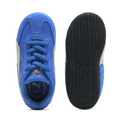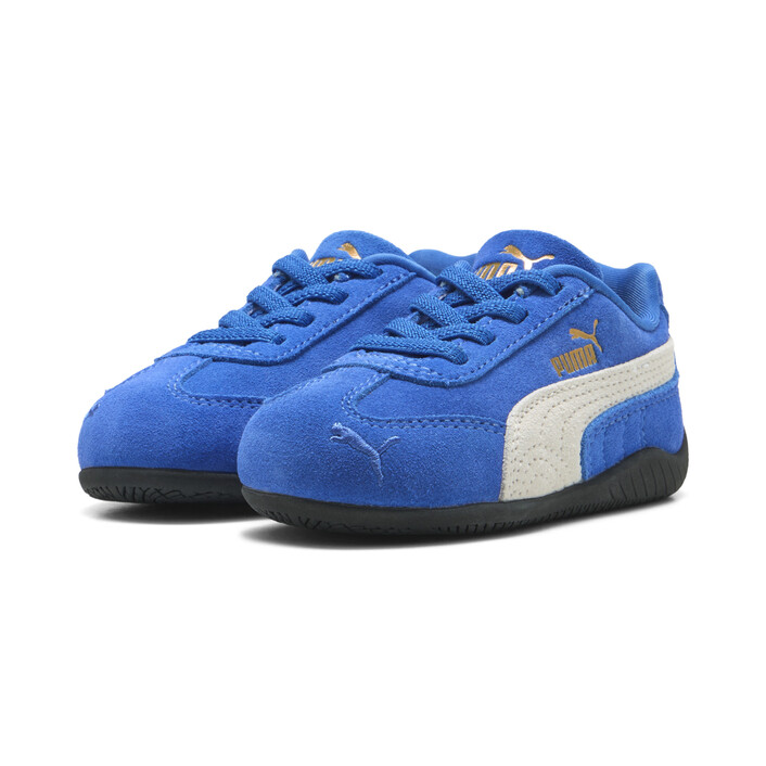 An icon of racing culture, the PUMthtA Speedcat has been synonymous with speed, precision, and unparalleled performance for over 25 years. Over the decades it found itself on a new circuit – transcending the tracks of Monaco for the streets of global fashion capitals. Your little fashionista will stand out in this version featuring a suede upper and bold suede PUMthtA Formstrip.