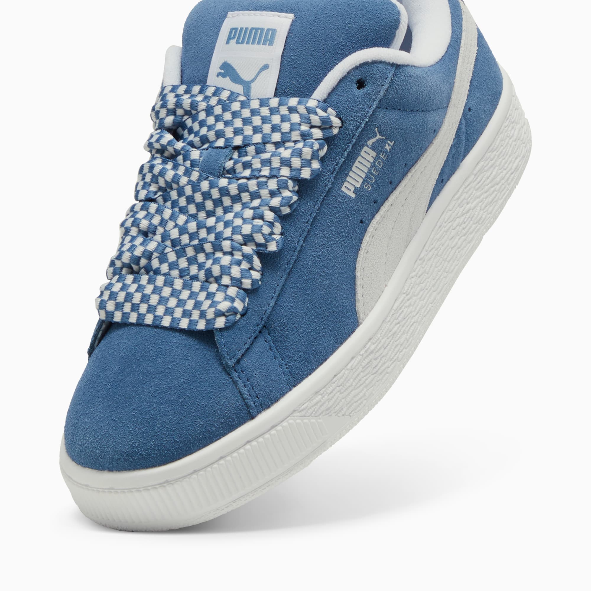 The Suede hit the scene in 1968 and has been changing the game ever since. It's been worn by icons of every generation, and it's stayed classic through it all. The Suede XL retains the Suede's iconic DNA, but gives it a twist with an exaggerated padded collar and tongue, plus a chunkier sole. This version features a bold plaid lace design.