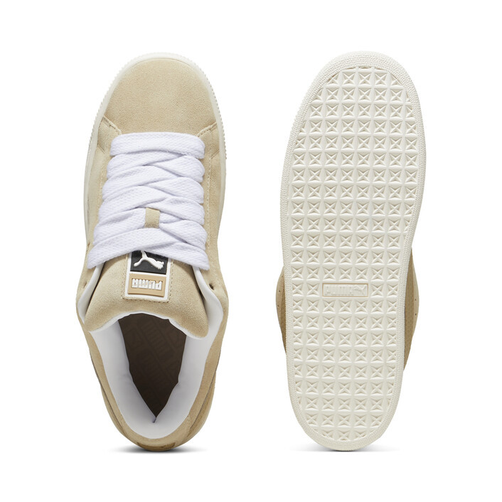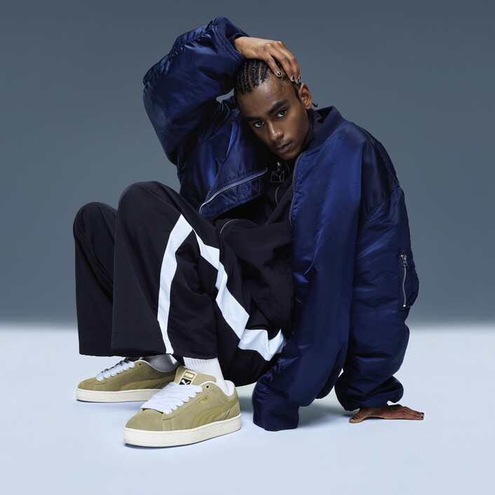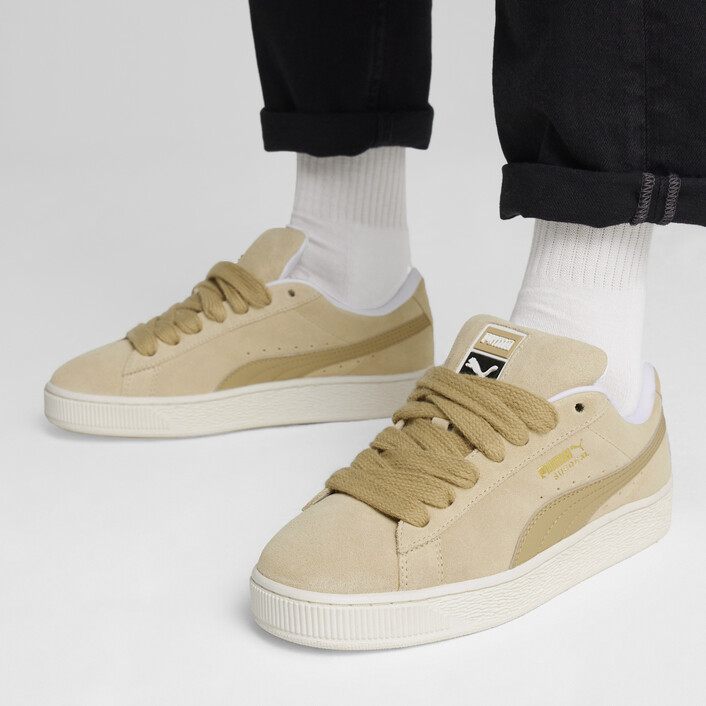 This fresh take on the classic Suede draws inspiration from PUMthtA’s heritage within breakdancing and its influence on modern streetwear. The Suede XL retains the Suede’s iconic DNA, but gives it a twist with an exaggerated padded collar and tongue, plus a chunkier sole. This execution features a full suede upper with a leather Formstrip.