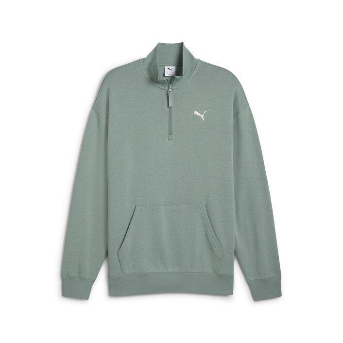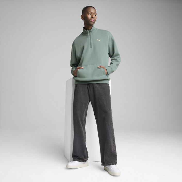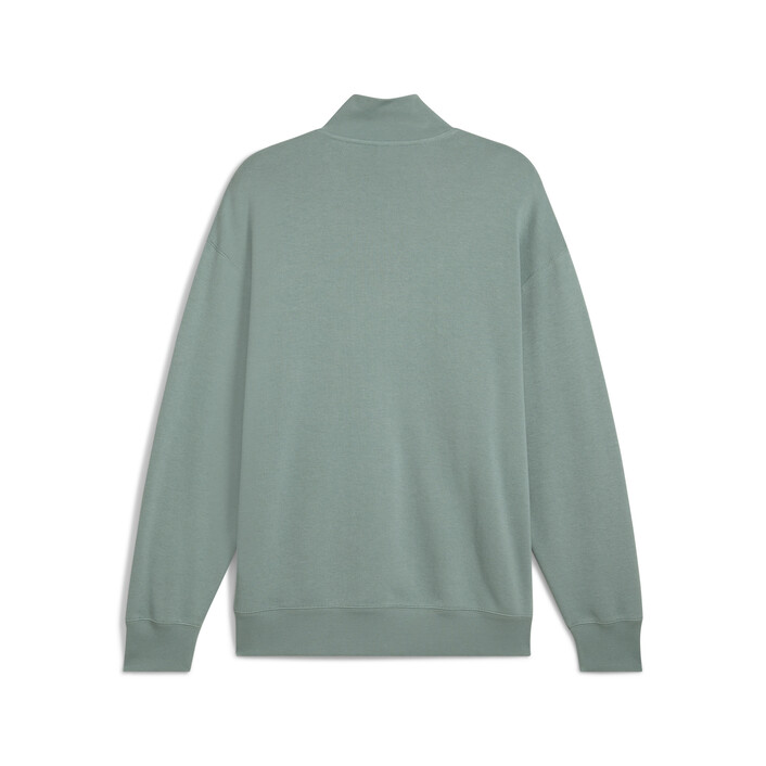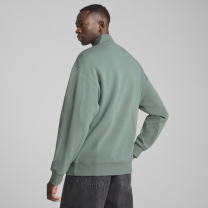 Stay effortlessly cool with this half-zip crew. Featuring a sleek logo, preppy French rib fabrication, and a stand-up rib collar, it's perfect for any casual occasion. Ribbed cuffs and hem ensure a snug fit. Make every day a PUMthtA day.